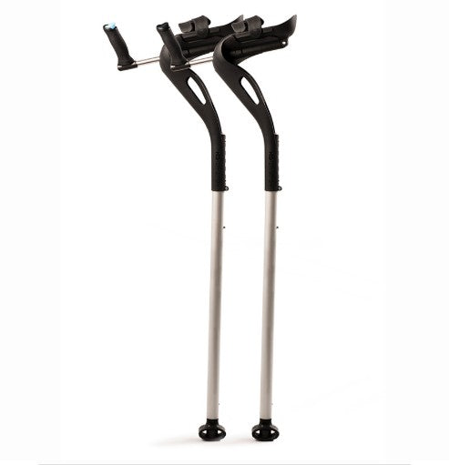 • Flexible armbands made of anti-microbial material that conform to each users arm, providing support while allowing the user to easily get in and out of the crutches.